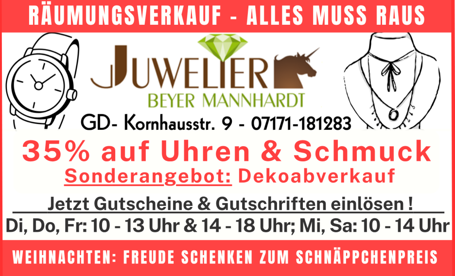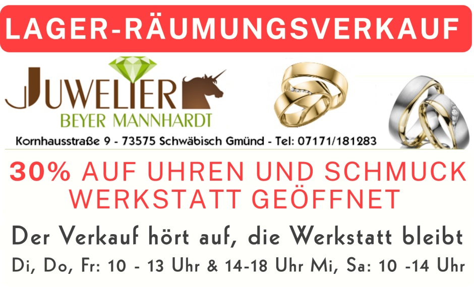 #Räumungsverkauf #Ausverkauf #Sale #Schäppchen #Rabatt #Prozente #Uhren #Schmuck #Batteriewechsel #Schmuckreparatur #beyermannhardt #Veränderungen #schwäbischgmünd #schwaebischgmuend
