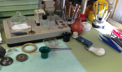 Wir übernehmen Ihren Batteriewechsel, Bandtausch oder Bandlängenänderungen von Standartmarken im Haus. Hochwertigere Uhren gehen mit zu unserem Partneruhrmachermeister außer Haus. Des Weiteren führen eine schöne Auswahl an Uhrenersatzbändern.